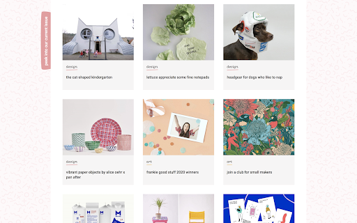 Magazine URLDesign ★★★☆☆ Usability ★★★☆☆ Creativity ★★☆☆☆ Content ★★★★☆ Mobile Friendly ★★★☆☆ Genres: Art Magazine